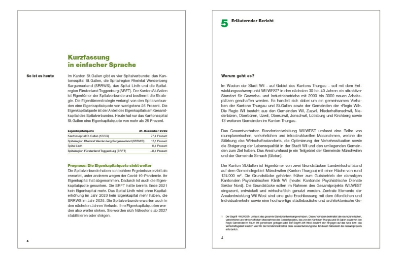 Der Ostschweizer Kanton St.Gallen hat seine Broschüre für die Volksabstimmung optisch und inhaltlich überarbeitet. Neu gibt es zu jeder Abstimmungsvorlage vorab eine Kurzfassung in einfacher Sprache. Sie beschreibt die aktuelle Situation und zeigt, was sich ändert. Zudem enthält sie die wichtigsten Pro- und Contra-Argumente.